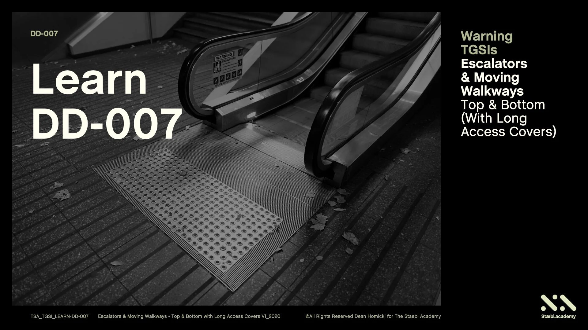 This Staebl.academy learning session will cover the use of Warning TGSIs on Escalators and Moving Walkways, Top and Bottom, (With Short Access Covers). For the orientation of persons who are blind or vision impaired, applying this knowledge enables us to determine how to use TGSIs and conform to the specifications of the Australian TGSI standards.