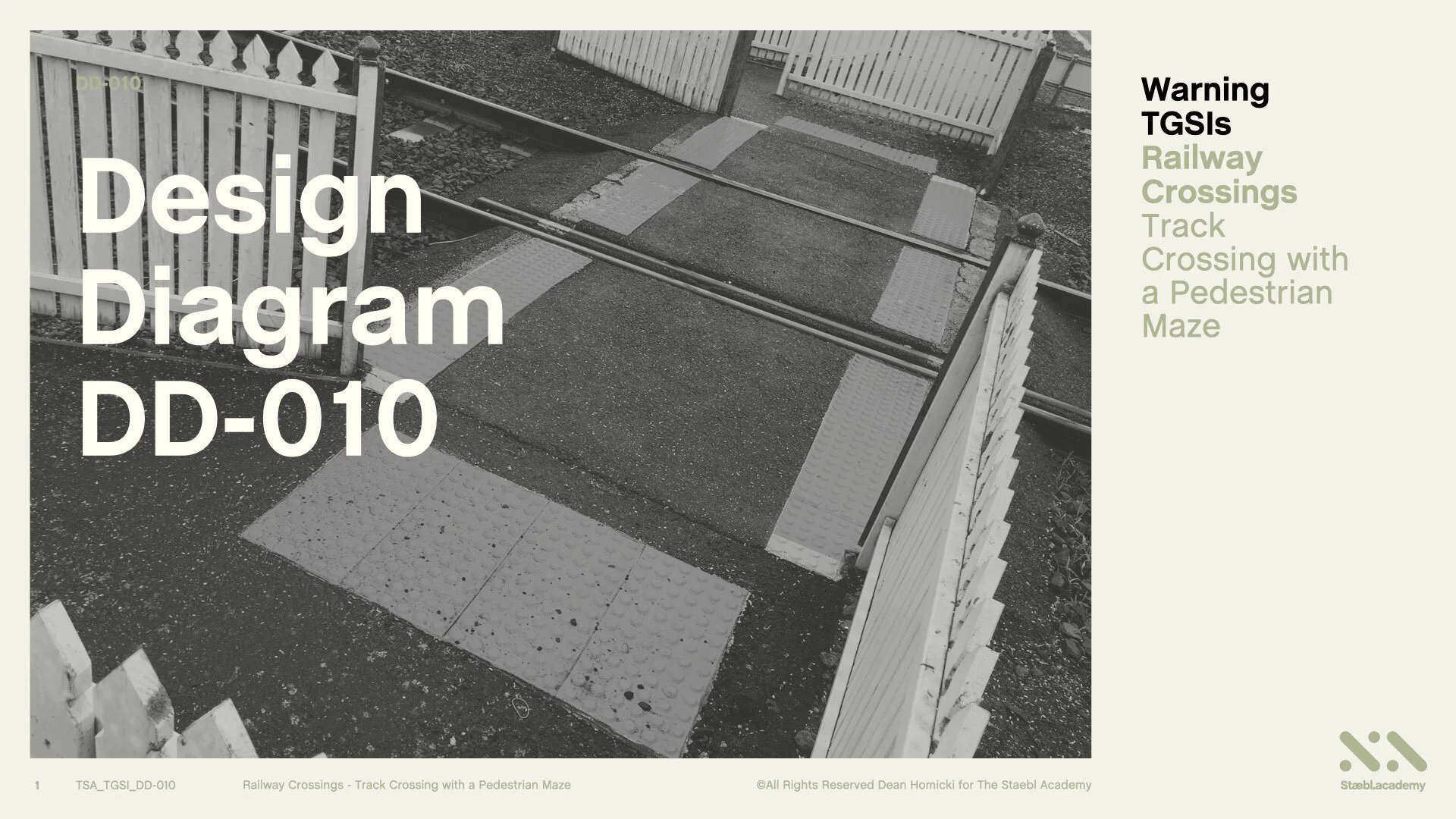 Let’s review one type of Railway Crossing, a Track Crossing with a Pedestrian Maze, and together extract what the Australian TGSI Standard, and Part 7 of the Manual of Uniform Traffic Control Devices Standard, and what they both require from a situation such as this.