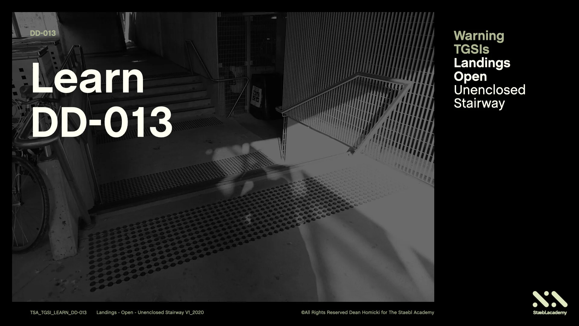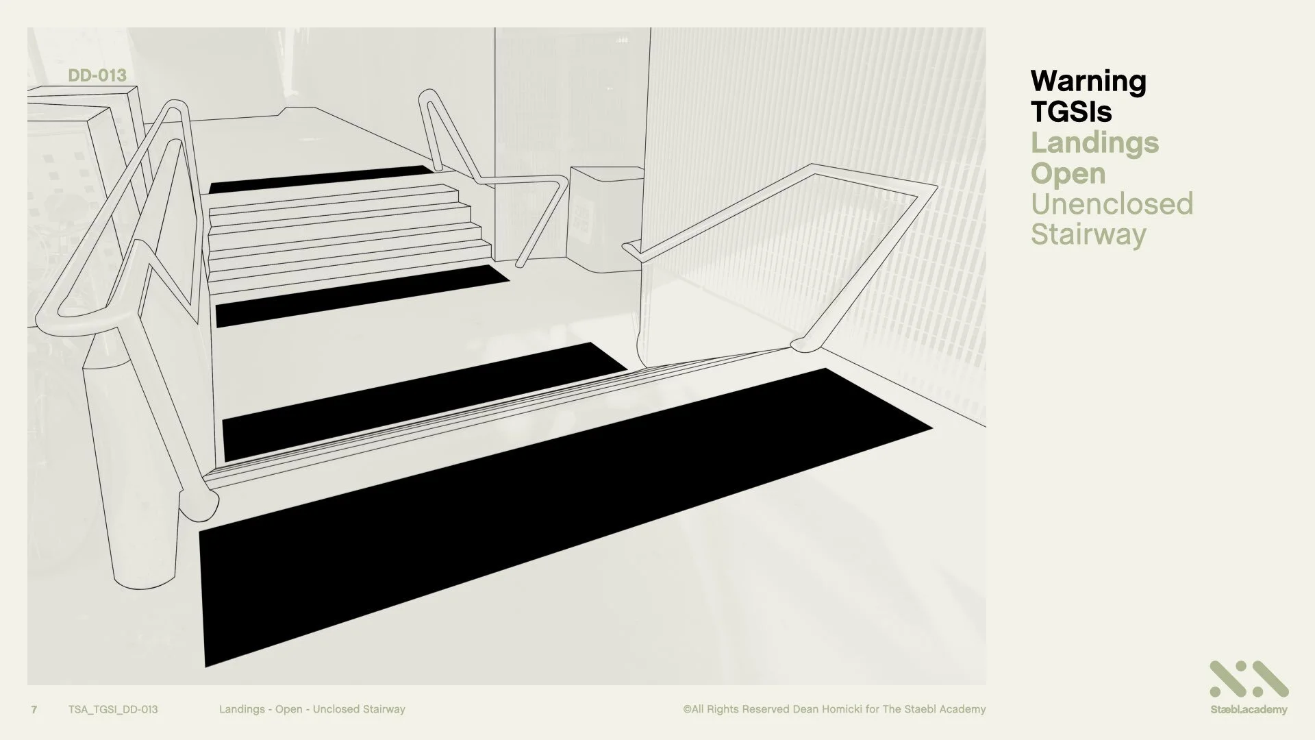 That’s the conclusion for Warning TGSIs on an Open Landing, on an unenclosed Stairway.