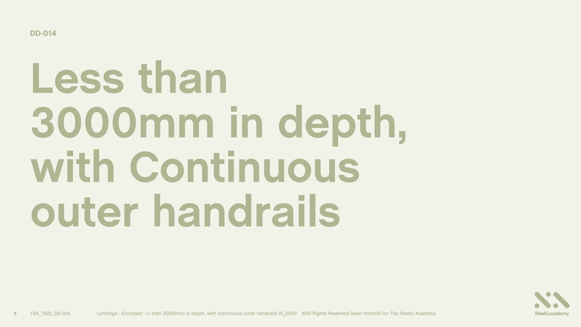 Here is a real-life situation of a Stairway with two ENCLOSED landings. The Landings are less than 3000 mm in depth and have Continuous outer handrails.