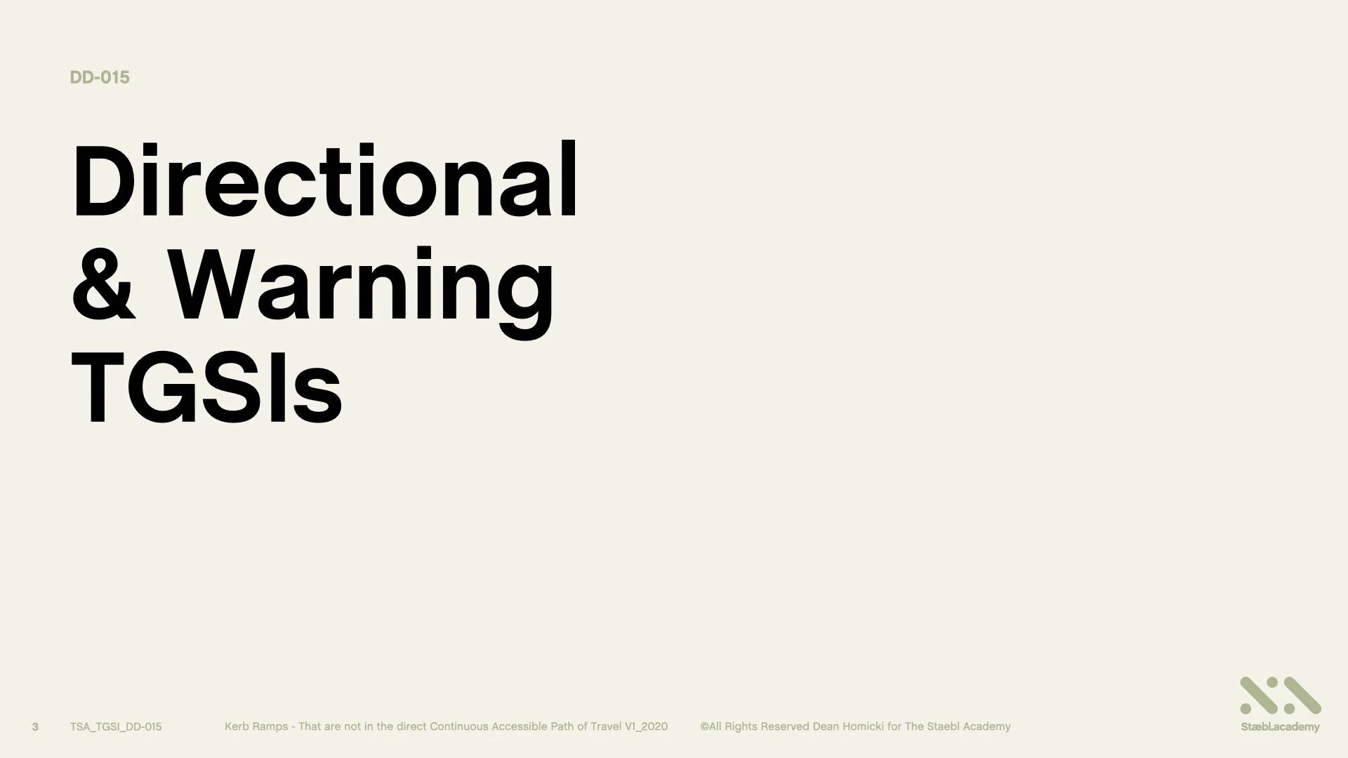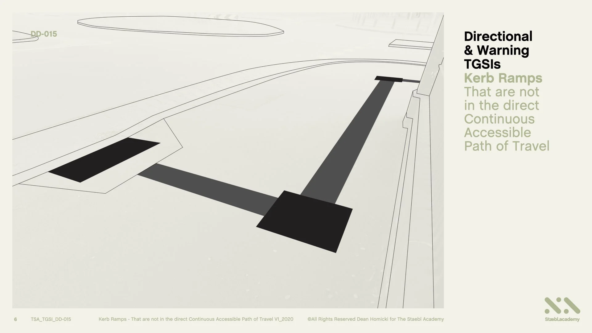That’s the conclusion for Directional and Warning TGSIs on Kerb Ramps that are not in the direct Continuous Accessible Path of Travel.