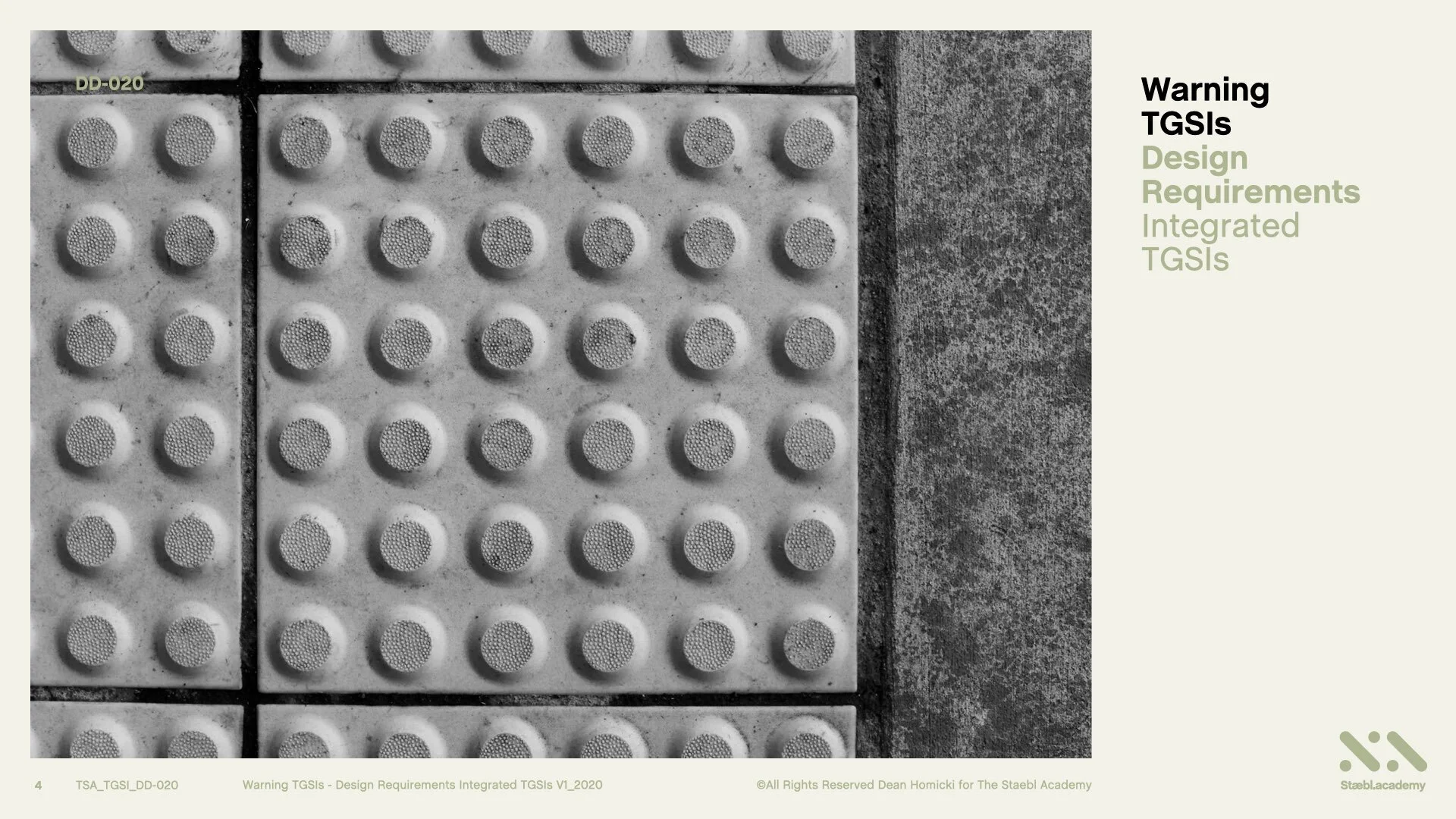 There are two types of Integrated TGSIs. These types are defined as Integrated Warning TGSIs and Integrated Directional TGSIs. In this learning session, we’ll review Integrated Warning TGSIs.