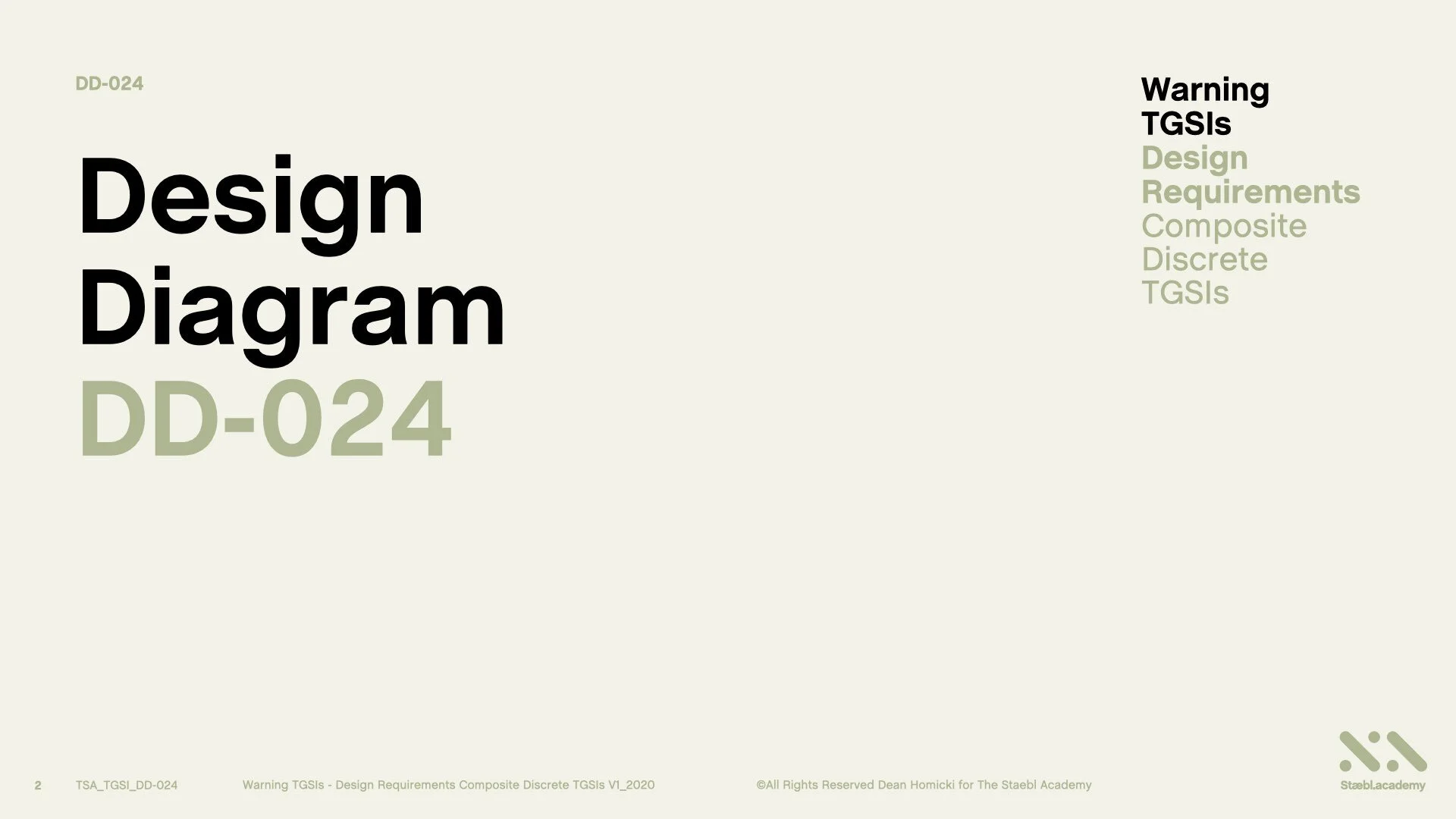 Welcome to staebl.academy TGSI Design Diagram 024. I’m Dean Homicki and I’ll be your guide for this course.